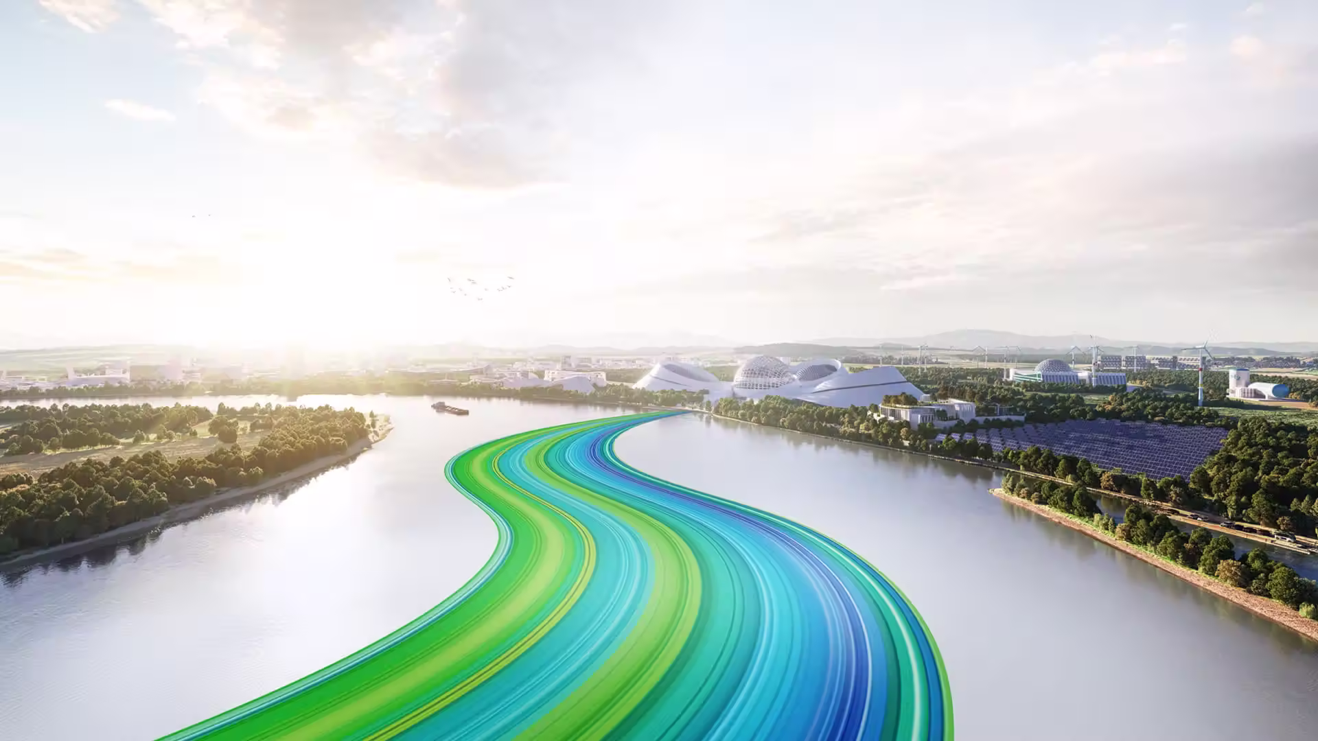 Aus mehreren Ideensträngen legten wir uns auf den Namen FLUXUM Gernsheim – der GreenTech Park fest, ergänzt durch den Claim Auf dem Weg nach Übermorgen. Der Name steht für die inhaltliche Transformation, die durch die grüne Technologie im Park vorangetrieben wird. Das Logo bildet die Rheinschleife ab, die in unmittelbarer Nähe zum Park fließt. Um die Fluidität des Logos darzustellen, konzipierten wir zusätzlich zum statischen Logo ein animiertes Soundlogo mit Originalklängen aus dem Rhein. Die Landingpage wurde mit Webflow aufgesetzt und beinhaltet einen ausführlichen Standort-Überblick sowie ein Newsletter-Modul. Für das Launch-Event wurde uns die komplette Organisation anvertraut, von der Gestaltung der Assets bis zur Konzeption des nötigen Technik-Setups. Und für die maximale Gänsehautgarantie gab's natürlich auch den passenden Imageclip:
